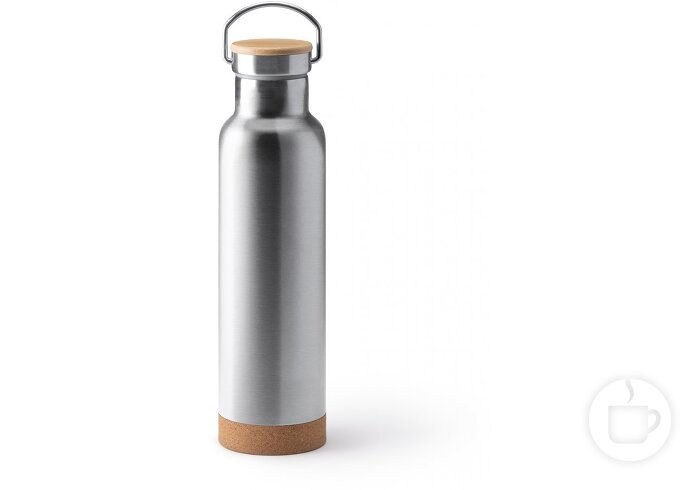 Bidono tipo termosas dvigubomis sienelėmis su bambuko dangteliu ir rankenėle nešimui. Pagamintas iš perdibto plieno, su kamštiniu dugnu. Šilumą išlaiko iki 6val.